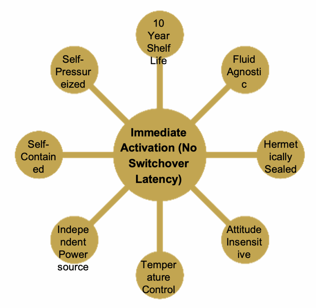 The EPOD will sense when a failure event has occurred and trigger, providing an emergency burst of fluid to critical hardware, allowing extended operation.